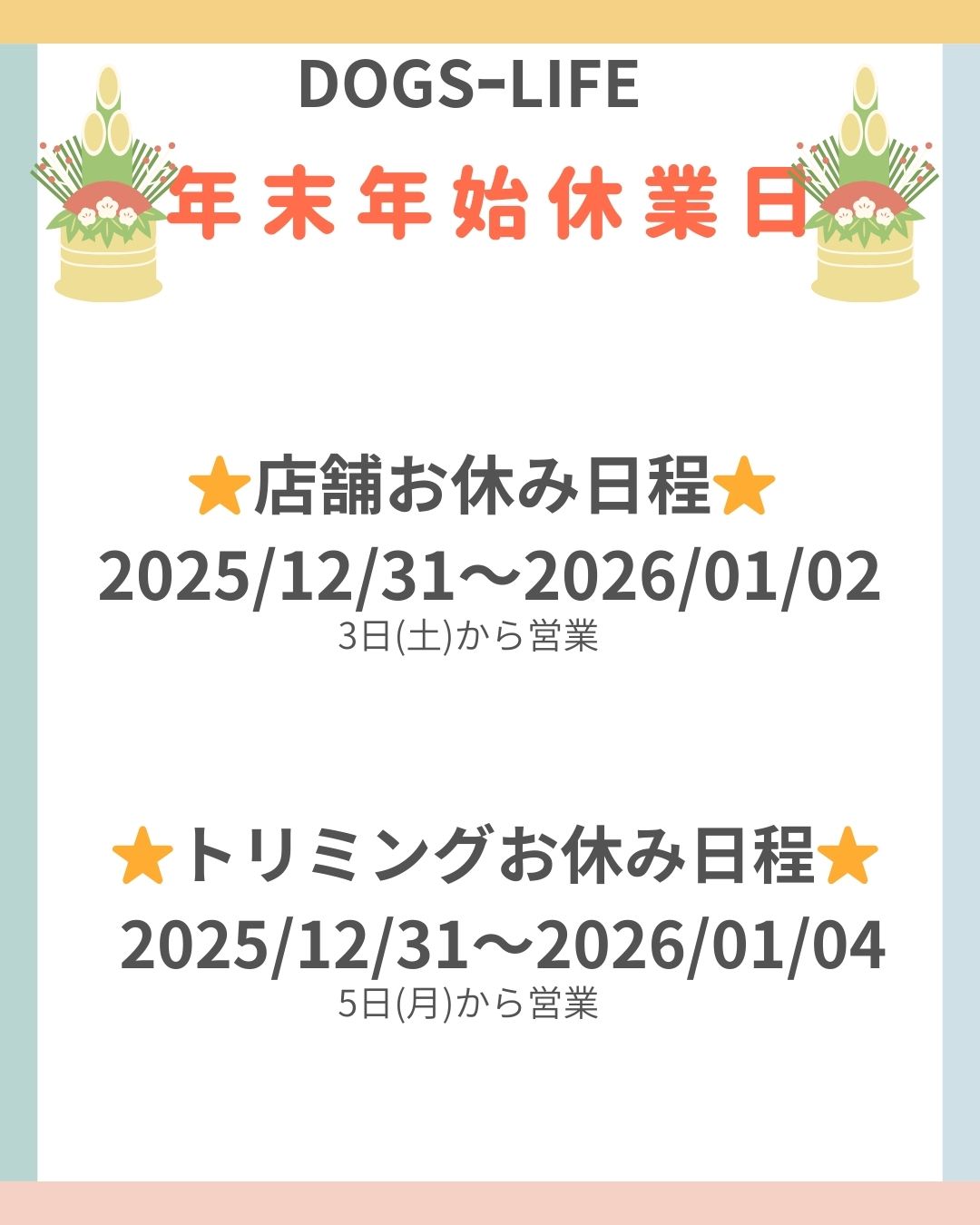 年末年始のお知らせ