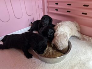 生後18日 最近ママのご飯に顔を突っ込んで食べようとしてるところを見るので、少し早めに離乳食の開始です🐩🍚